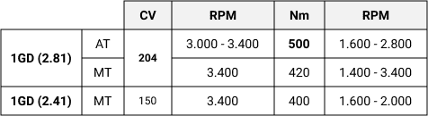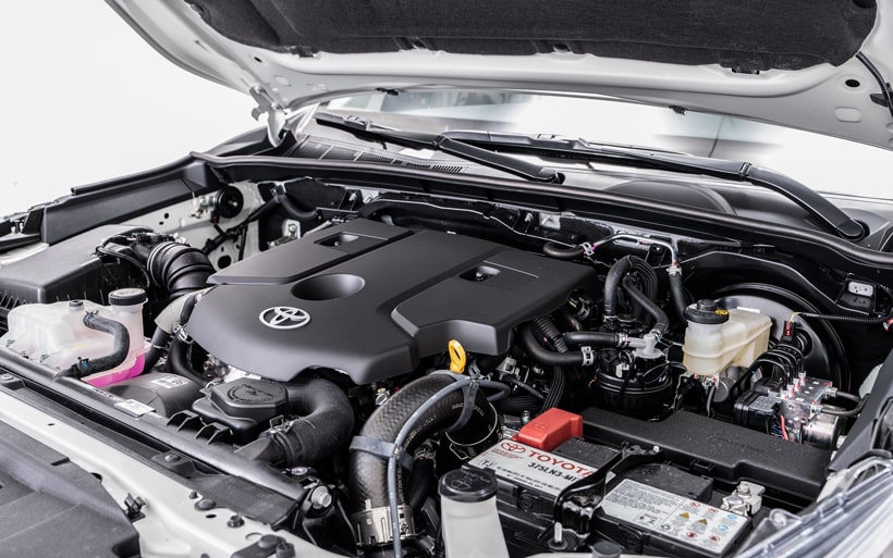 El motor 2GD (2.4l) con 150 CF y 400 Nm de torque, mantiene su característico balance entre performance y economía de combustible.
